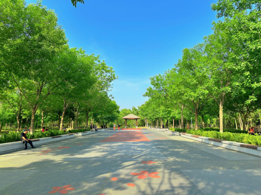 如今的永定河平原段,已经形成一条绿色走廊——永定河休闲森林公园、永定河文化公园、园博园、晓月公园、绿堤公园、紫谷伊甸园、北天堂公园……在这些公园里,有一条长13公里的丰台区创建国家森林城市项目——永定河亲水廊道,它北起晓月公园,途经绿堤郊野公园、紫谷伊甸园,终点在北天堂公园,形成覆盖永定河沿线360余公顷蓝绿空间的亲水空间。骑行其间,一路穿行在花海绿堤中,可观鸟、可健身、可休憩,还可远眺北京市目前单跨跨度最大的桥梁——京雄大桥。如今这条亲水廊道已经成为众多市民的郊游新选择,有效提升永定河沿线城市空间品质和综合服务能力。